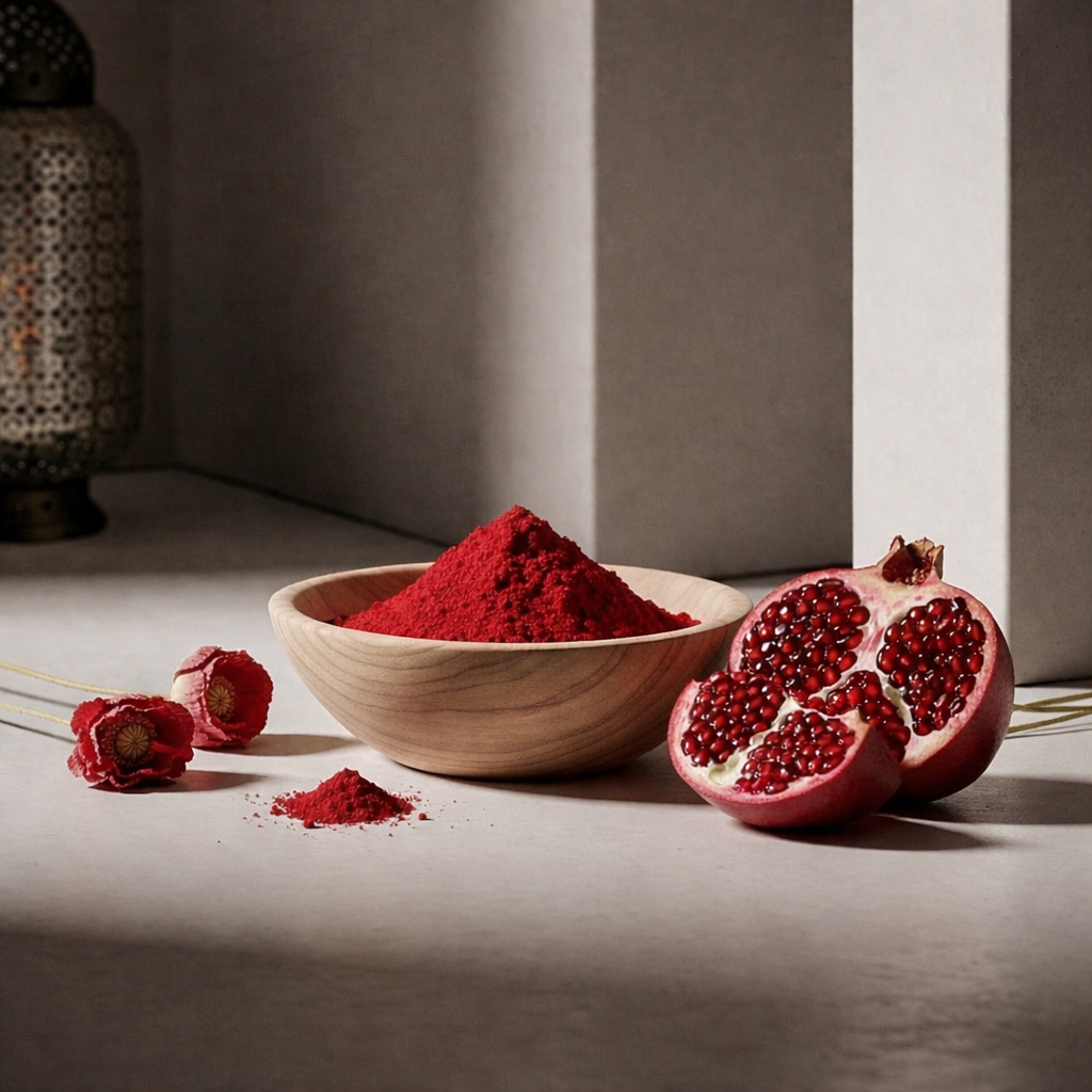 • Pomegranate peel – naturally rich in skin-supporting compounds