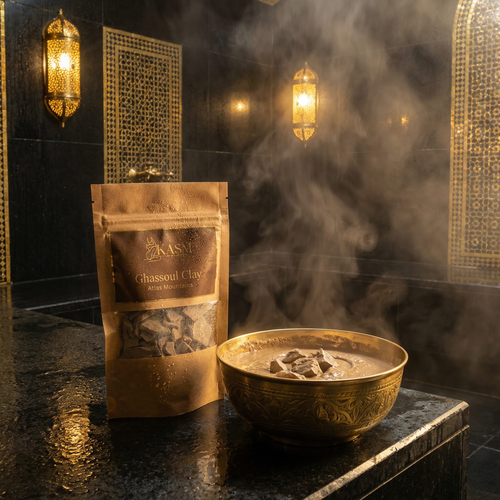 When mixed with water or rose water, Ghassoul transforms into a silky mineral paste that gently purifies without stripping the skin.