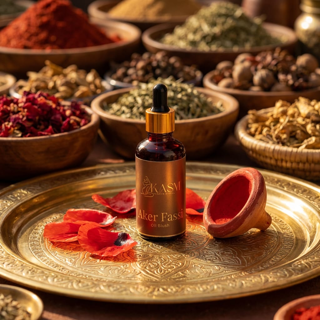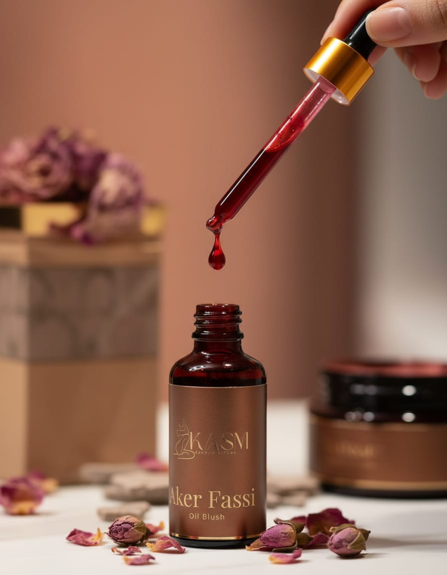Aker Fassi traces back to centuries-old Moroccan beauty rituals, where natural botanical pigments were pressed into terracotta and activated with water to reveal their vibrant red hue.