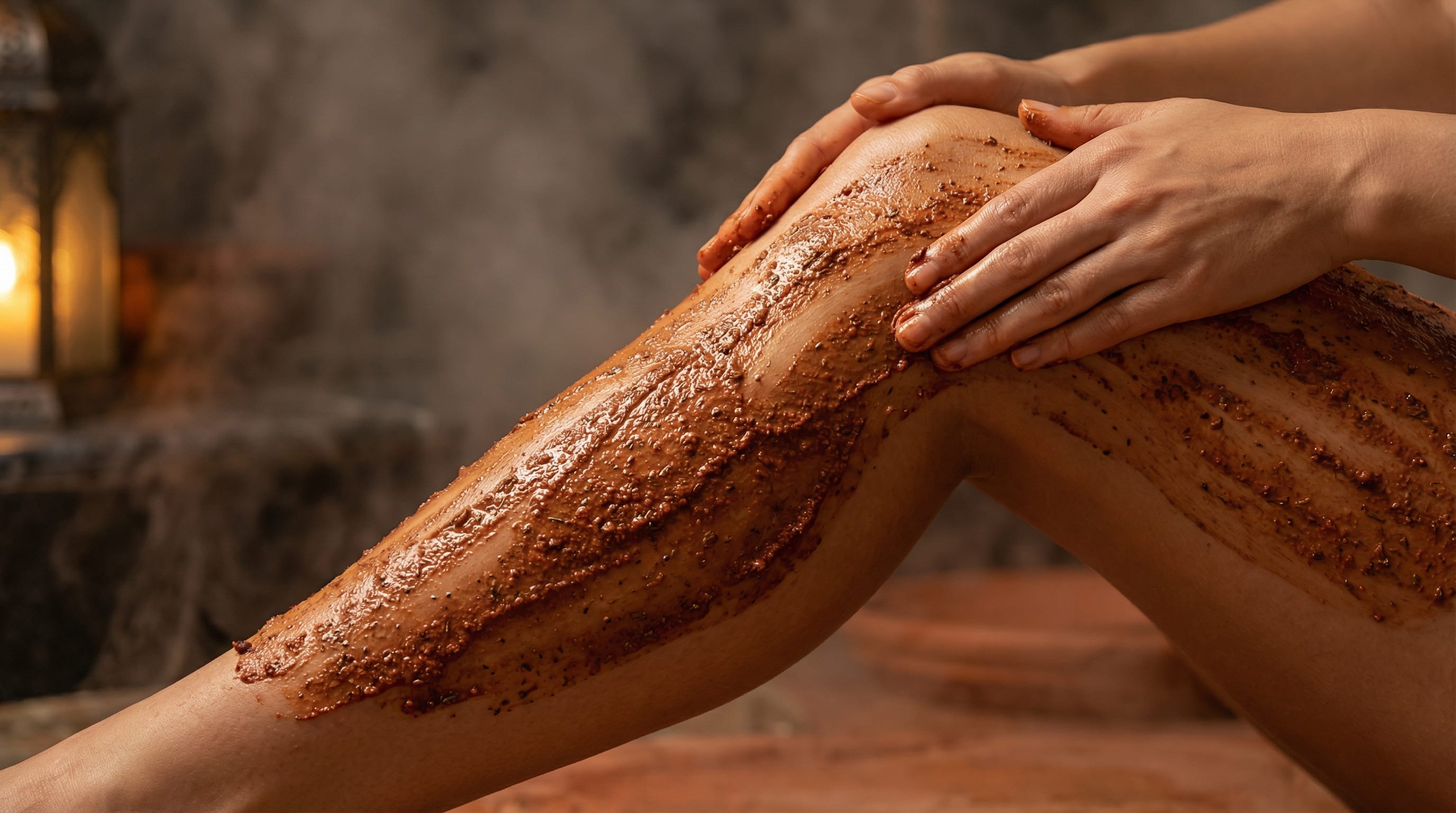 After the skin softens under Sabon Beldi, the traditional Kessa glove gently sweeps away buildup, revealing a smoother, visibly renewed surface — just as practiced for centuries in Moroccan hammams .